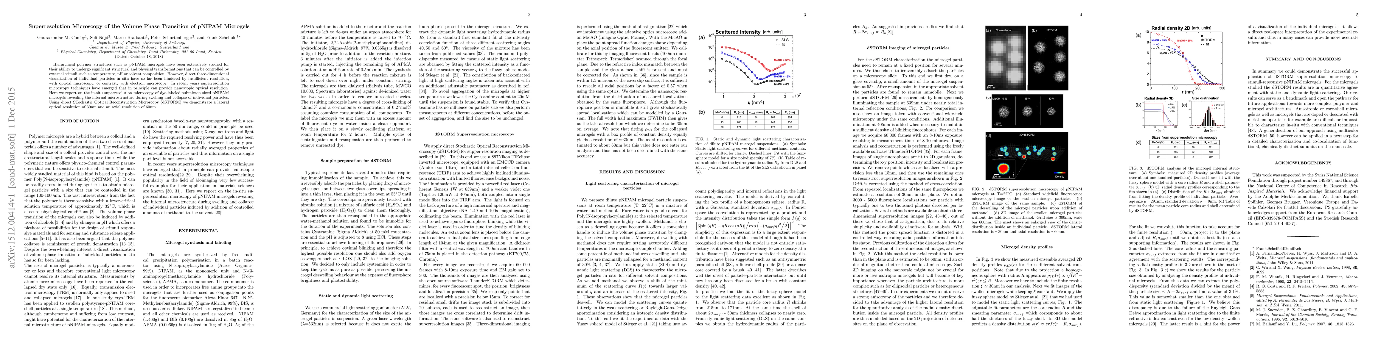 The research used super-resolution microscopy to study the volume phase transition of pNIPAM microgels.