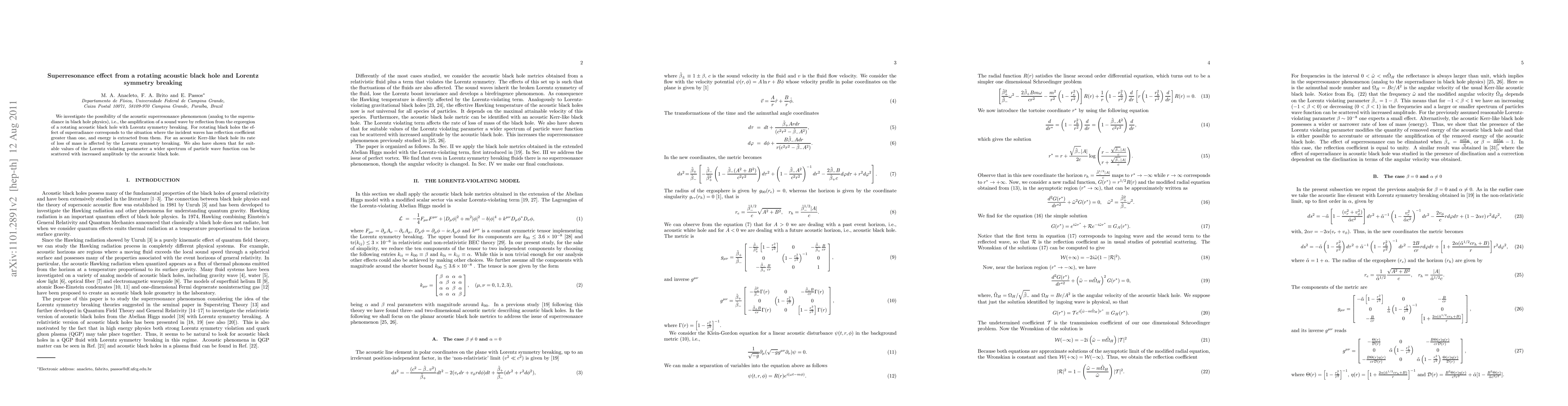 This paper explores acoustic superresonance in rotating acoustic black holes, analogous to superradiance, where sound waves are amplified by reflection from the ergoregion. The study reveals that Lorentz symmetry breaking influences the mass loss rate and allows a broader spectrum of wave functions to be scattered with greater amplitude.