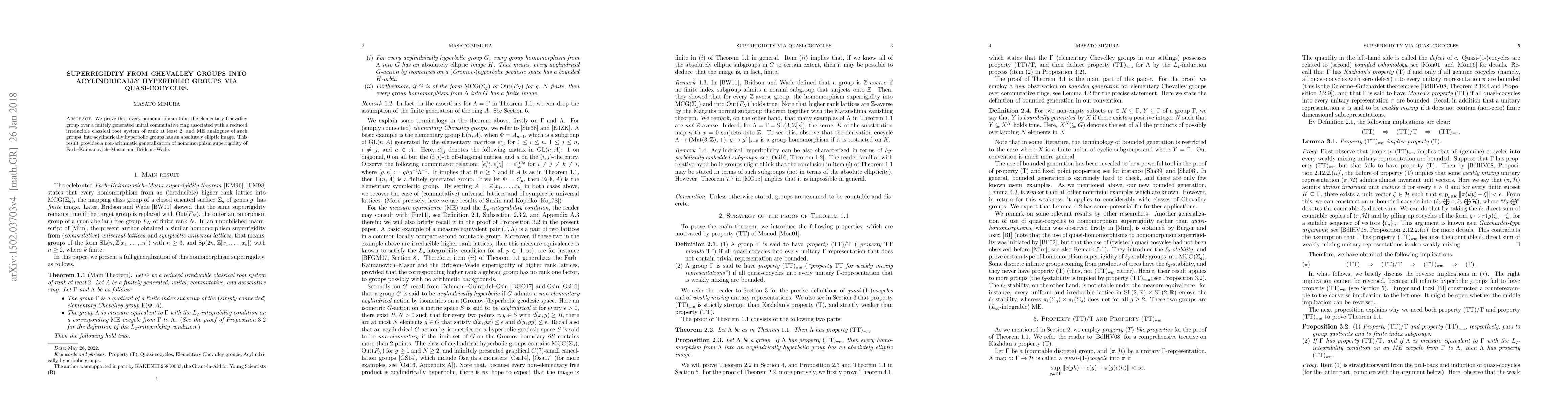 Summary: This paper demonstrates that homomorphisms from certain Chevalley groups into acylindrically hyperbolic groups have absolutely elliptic images, extending the concept of superrigidity beyond arithmetic settings.