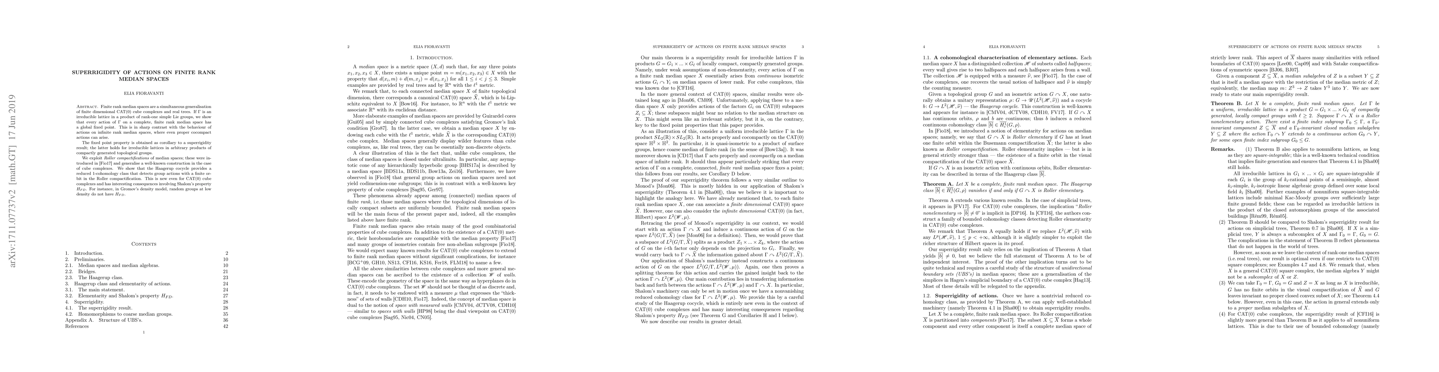 Finite rank median spaces are a simultaneous generalisation of finite dimensional ${\rm CAT}(0)$ cube complexes and real trees. If $\Gamma$ is an irreducible lattice in a product of rank one simple Lie groups, we show that every action of $\Gamma$ on a complete, finite rank median space has a global fixed point. This is in sharp contrast with the behaviour of actions on infinite rank median spaces. The fixed point property is obtained as corollary to a superrigidity result; the latter holds for irreducible lattices in arbitrary products of compactly generated groups. In previous work, we introduced "Roller compactifications" of median spaces; these generalise a well-known construction in the case of cube complexes. We provide a reduced $1$-cohomology class that detects group actions with a finite orbit in the Roller compactification. Even for ${\rm CAT}(0)$ cube complexes, only second bounded cohomology classes were known with this property, due to Chatterji-Fern\'os-Iozzi. As a corollary, we observe that, in Gromov's density model, random groups at low density do not have Shalom's property $H_{FD}$.