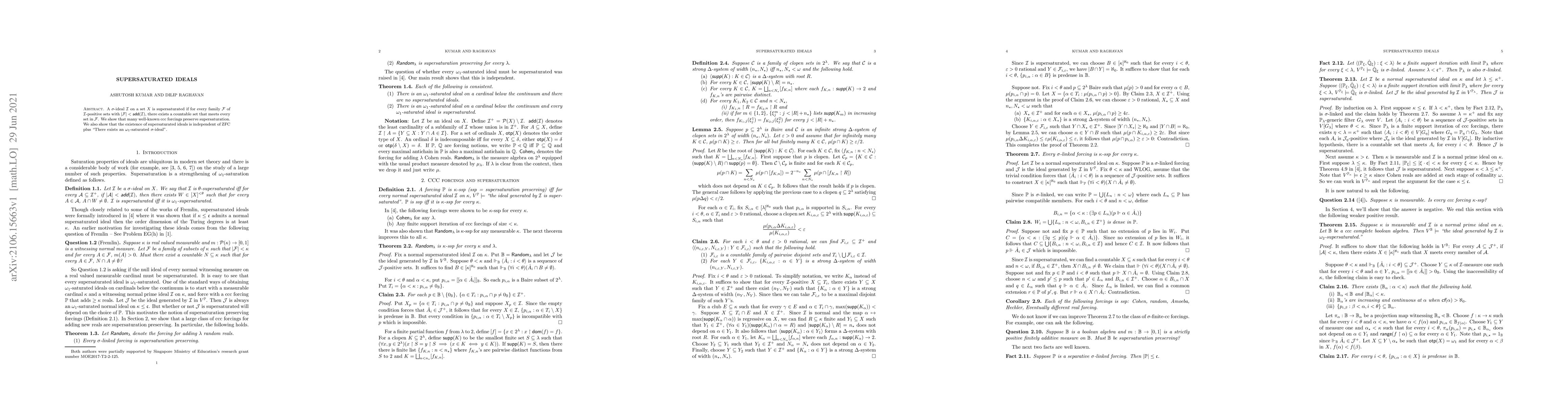 Summary: This paper explores the concept of supersaturated $\sigma$-ideals on a set $X$, demonstrating that many ccc forcings preserve their supersaturation and proving the independence of their existence from ZFC plus the existence of an $\omega_1$-saturated $\sigma$-ideal.