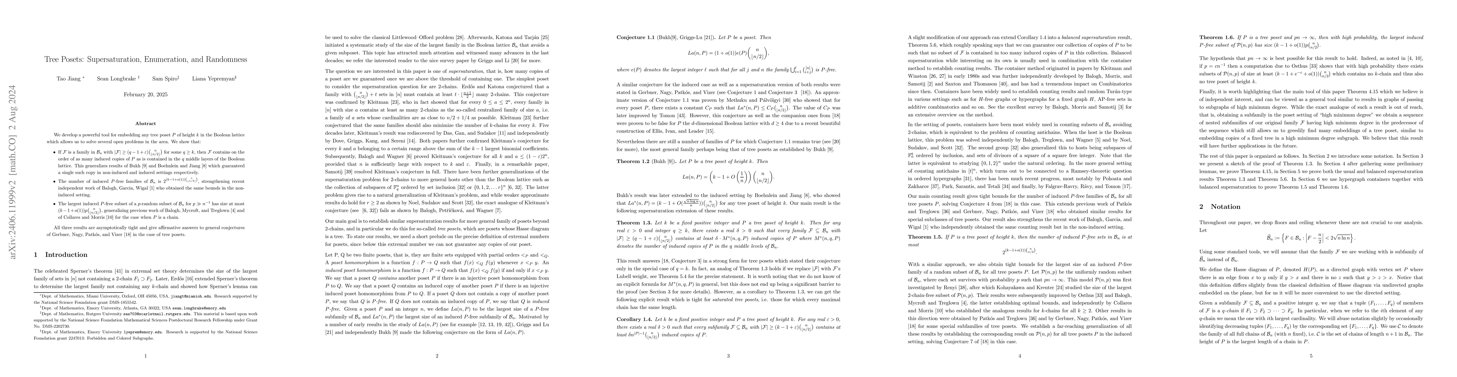 This paper strengthens results on the supersaturation of tree posets within the Boolean lattice, proving that a sufficiently large family $\mathcal{F}$ contains many induced copies of a tree poset $P$, matching the count found in the middle layers of the Boolean lattice. This resolves a conjecture for tree posets by Gerbner, Nagy, Patkós, and Vizer.
