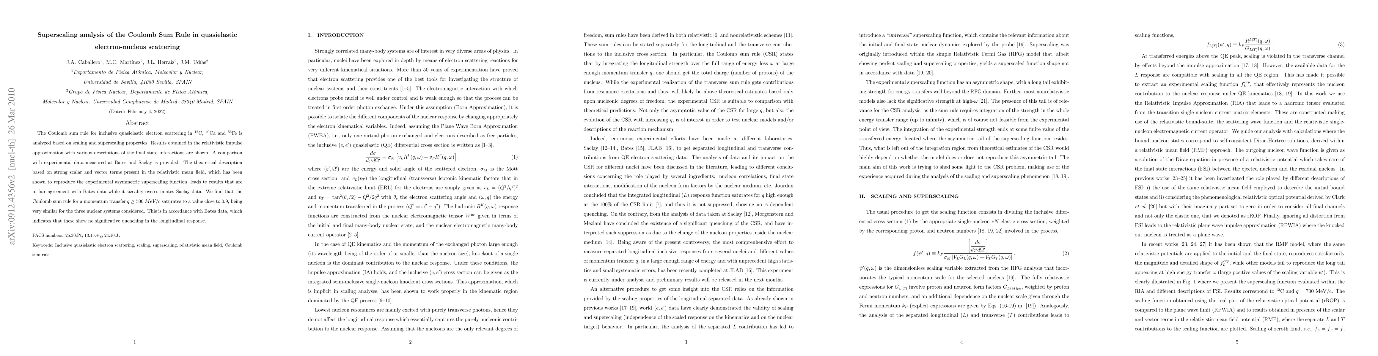This paper analyzes the Coulomb sum rule in quasielastic electron-nucleus scattering for $^{12}$C, $^{40}$Ca, and $^{56}$Fe using relativistic impulse approximation and superscaling. The theoretical model shows fair agreement with Bates data but overestimates Saclay results, indicating saturation near 0.9 for $q\geq 500$ MeV/c.