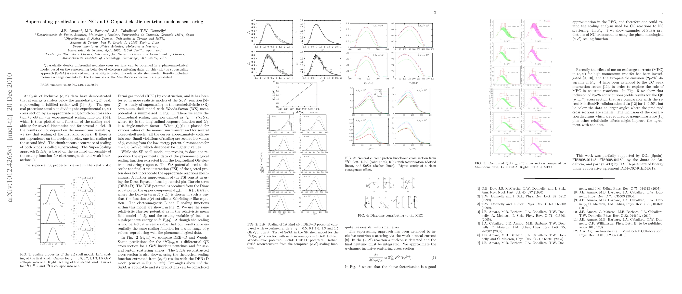 This paper reviews the superscaling approach (SuSA) for predicting quasielastic neutrino-nucleus scattering, testing its validity with a relativistic shell model, and presents results including meson exchange currents relevant to the MiniBoone experiment. The study aims to provide a phenomenological model based on superscaling behavior of electron scattering data.