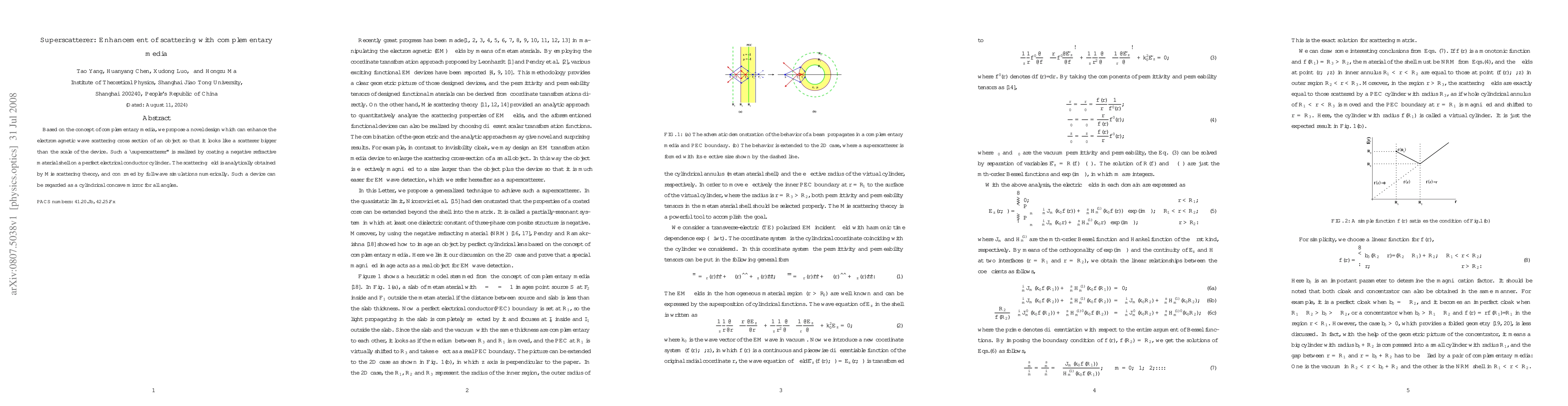 Based on the concept of complementary media, we propose a novel design which can enhance the electromagnetic wave scattering cross section of an object so that it looks like a scatterer bigger than the scale of the device. Such a ``superscatterer'' is realized by coating a negative refractive material shell on a perfect electrical conductor cylinder. The scattering field is analytically obtained by Mie scattering theory, and confirmed by full-wave simulations numerically. Such a device can be regarded as a cylindrical concave mirror for all angles.