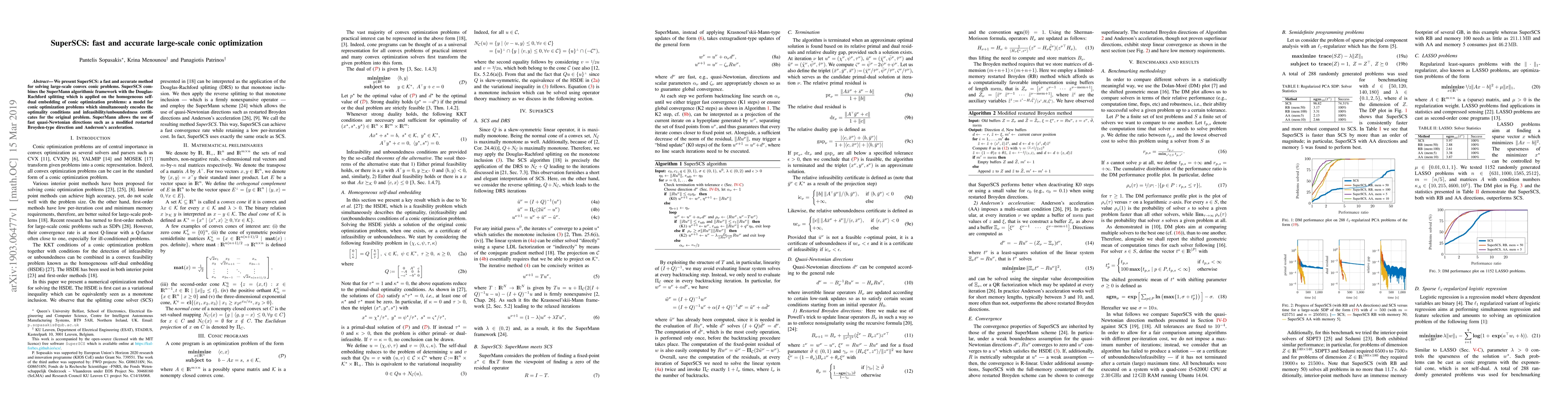This paper introduces SuperSCS, a fast and accurate method for solving large-scale convex conic optimization problems, combining the SuperMann framework with Douglas-Rachford splitting to achieve high performance and accuracy.