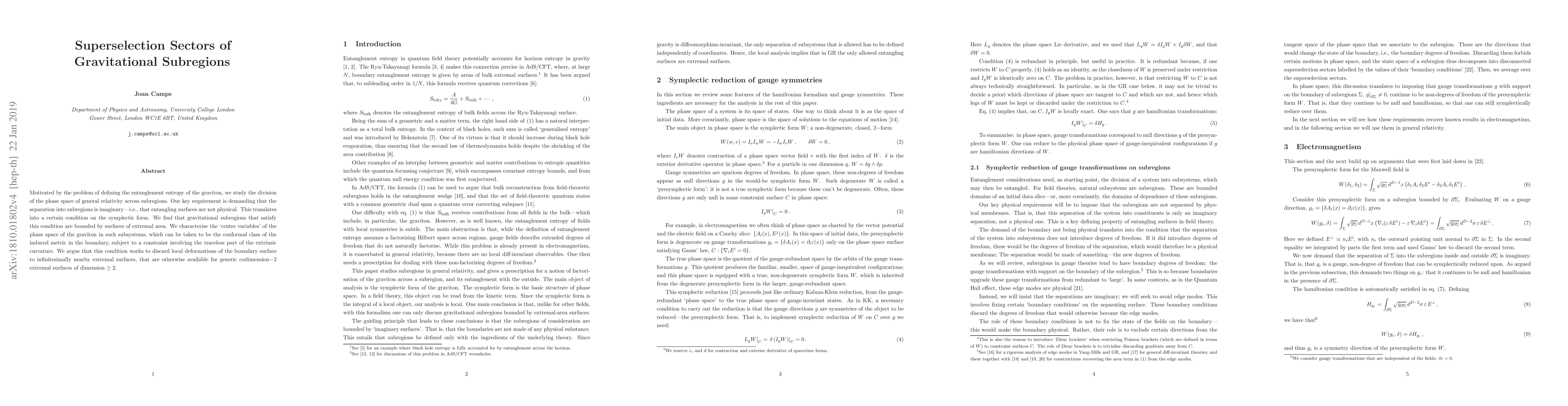 Motivated by the problem of defining the entanglement entropy of the graviton, we study the division of the phase space of general relativity across subregions. Our key requirement is demanding that the separation into subregions is imaginary---i.e., that entangling surfaces are not physical. This translates into a certain condition on the symplectic form. We find that gravitational subregions that satisfy this condition are bounded by surfaces of extremal area. We characterise the 'centre variables' of the phase space of the graviton in such subsystems, which can be taken to be the conformal class of the induced metric in the boundary, subject to a constraint involving the traceless part of the extrinsic curvature. We argue that this condition works to discard local deformations of the boundary surface to infinitesimally nearby extremal surfaces, that are otherwise available for generic codimension-2 extremal surfaces of dimension $\geq$ 2.
