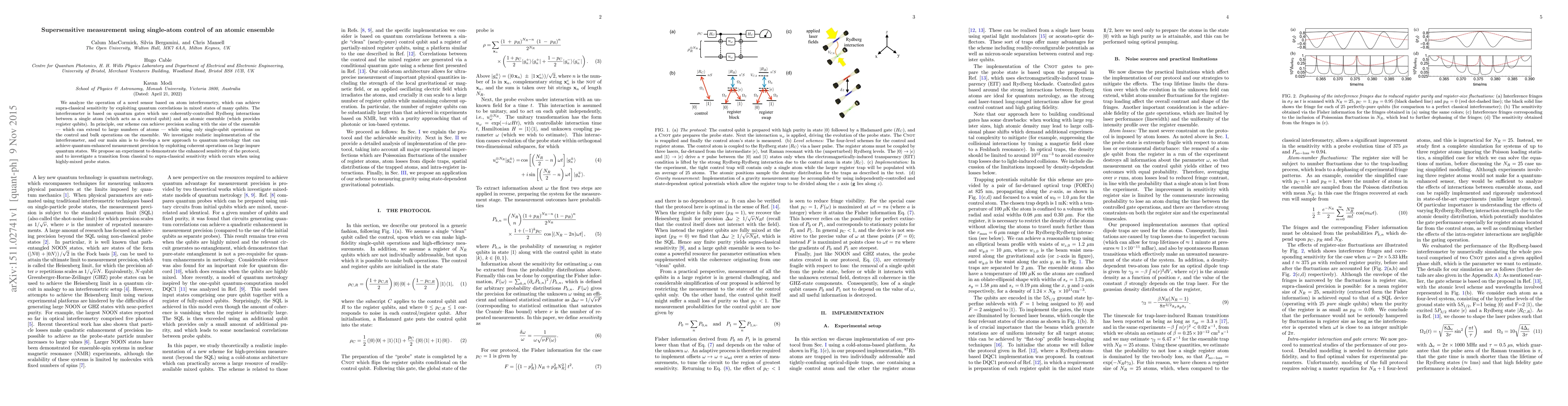 We analyze the operation of a novel sensor based on atom interferometry, which can achieve supra-classical sensitivity by exploiting quantum correlations in mixed states of many qubits. The interferometer is based on quantum gates which use coherently-controlled Rydberg interactions between a single atom (which acts as a control qubit) and an atomic ensemble (which provides register qubits). In principle, our scheme can achieve precision scaling with the size of the ensemble - which can extend to large numbers of atoms - while using only single-qubit operations on the control and bulk operations on the ensemble. We investigate realistic implementation of the interferometer, and our main aim is to develop a new approach to quantum metrology that can achieve quantum-enhanced measurement precision by exploiting coherent operations on large impure quantum states. We propose an experiment to demonstrate the enhanced sensitivity of the protocol, and to investigate a transition from classical to supra-classical sensitivity which occurs when using highly-mixed probe states.