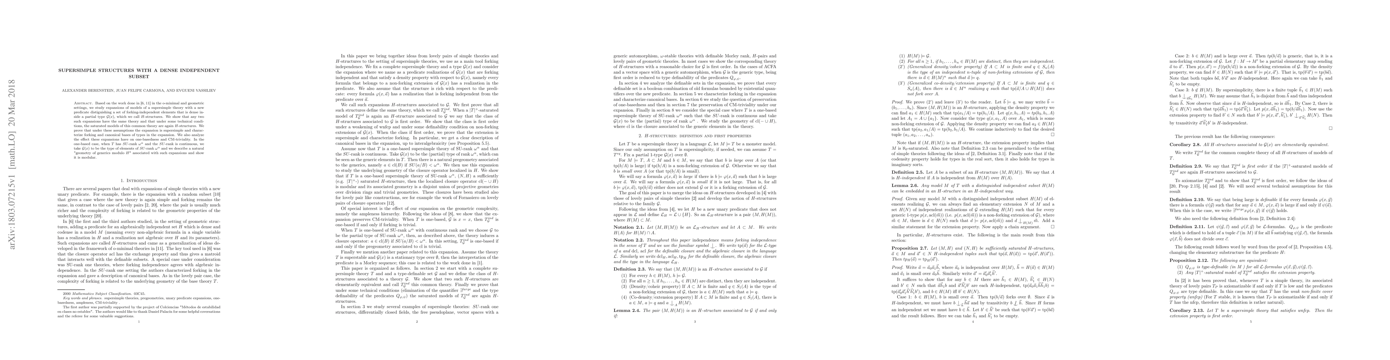 Based on the work done in \cite{BV-Tind,DMS} in the o-minimal and geometric settings, we study expansions of models of a supersimple theory with a new predicate distiguishing a set of forking-independent elements that is dense inside a partial type $\mathcal{G}(x)$, which we call $H$-structures. We show that any two such expansions have the same theory and that under some technical conditions, the saturated models of this common theory are again $H$-structures. We prove that under these assumptions the expansion is supersimple and characterize forking and canonical bases of types in the expansion. We also analyze the effect these expansions have on one-basedness and CM-triviality. In the one-based case, when $T$ has $SU$-rank $\omega^\alpha$ and the $SU$-rank is continuous, we take $\mathcal{G}(x)$ to be the type of elements of $SU$-rank $\omega^\alpha$ and we describe a natural "geometry of generics modulo $H$" associated with such expansions and show it is modular.