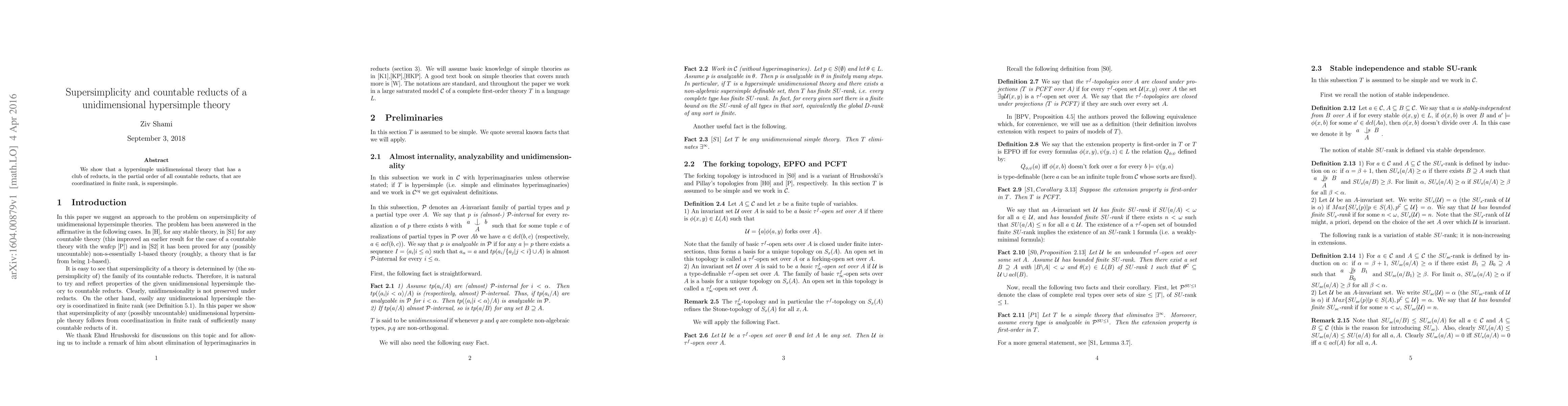Summary: This paper demonstrates that a unidimensional hypersimple theory possessing a club of countable reducts, which are coordinatized in finite rank, is classified as supersimple. The study explores the implications of such structural properties within the framework of countable reducts.