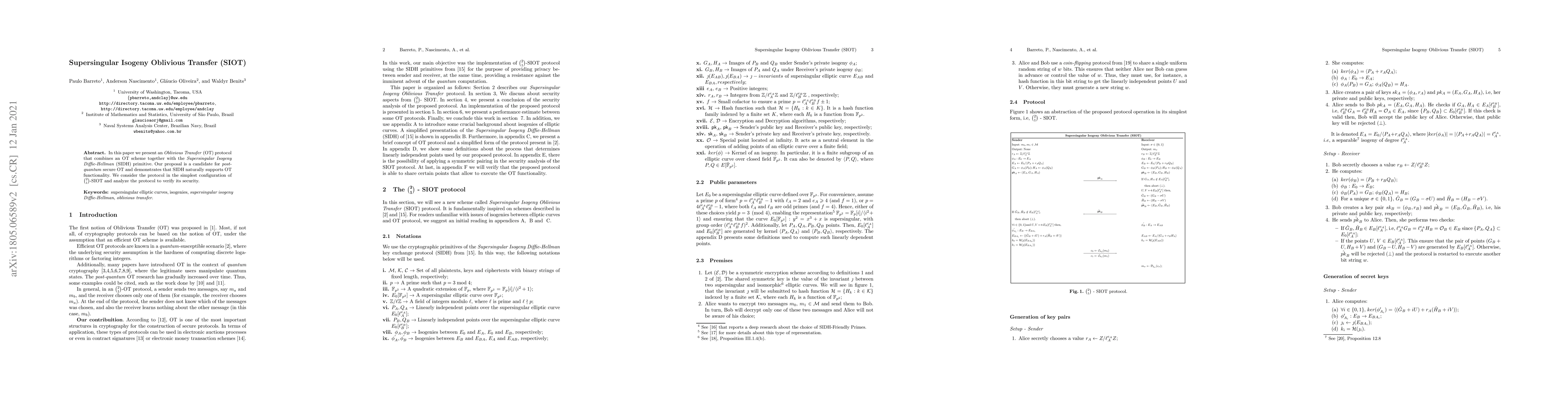 This paper introduces a new oblivious transfer protocol combining Chou and Orlandi's OT scheme with the supersingular isogeny Diffie-Hellman (SIDH) primitive, aiming for post-quantum security. The protocol's security is analyzed in the simplest $\binom{2}{1}$-OT configuration.