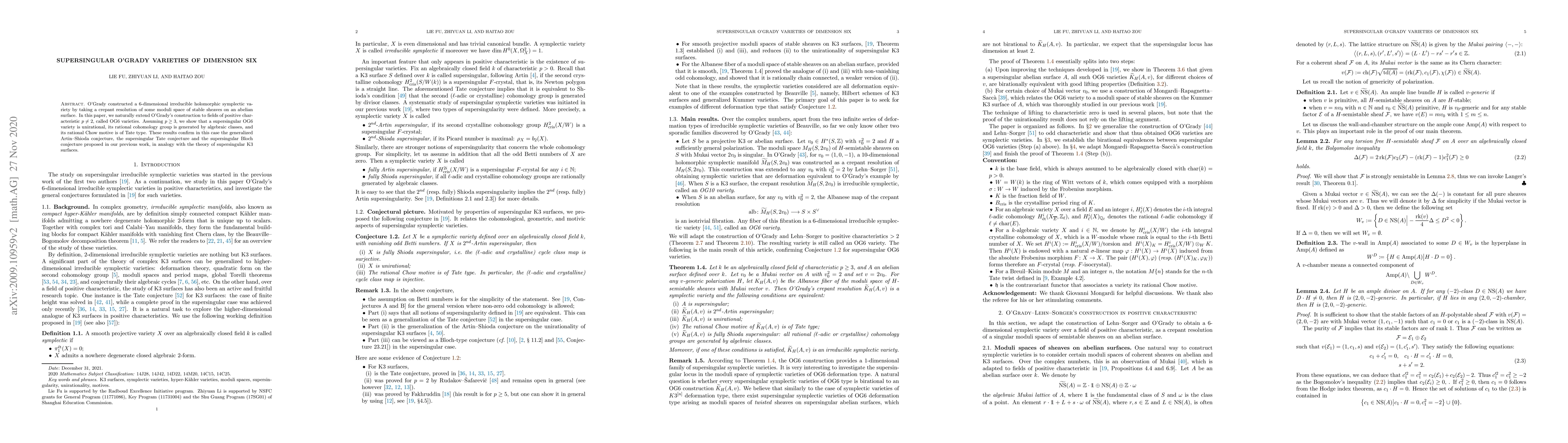 This paper extends O'Grady's construction of a 6-dimensional irreducible holomorphic symplectic variety to positive characteristic fields, demonstrating that supersingular OG6 varieties are unirational and their rational cohomology is generated by algebraic classes. These findings support the generalized Artin-Shioda, supersingular Tate, and Bloch conjectures.