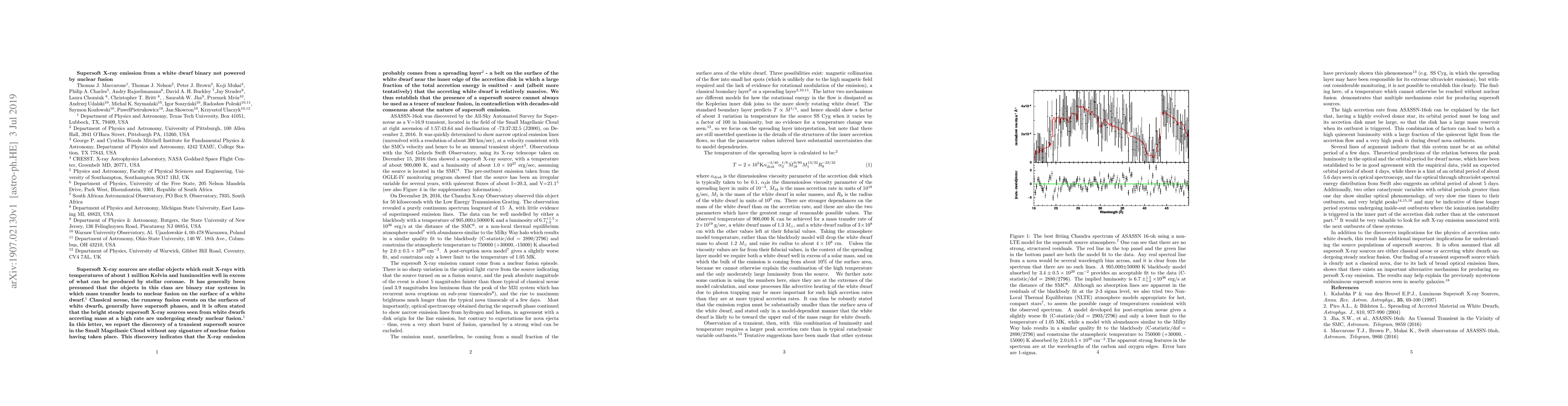 This paper reports the discovery of a transient supersoft X-ray source in a white dwarf binary that does not exhibit nuclear fusion, suggesting that its X-ray emission originates from a "spreading layer" on the white dwarf's surface. This finding challenges the long-held belief that supersoft X-ray sources are always powered by nuclear fusion.
