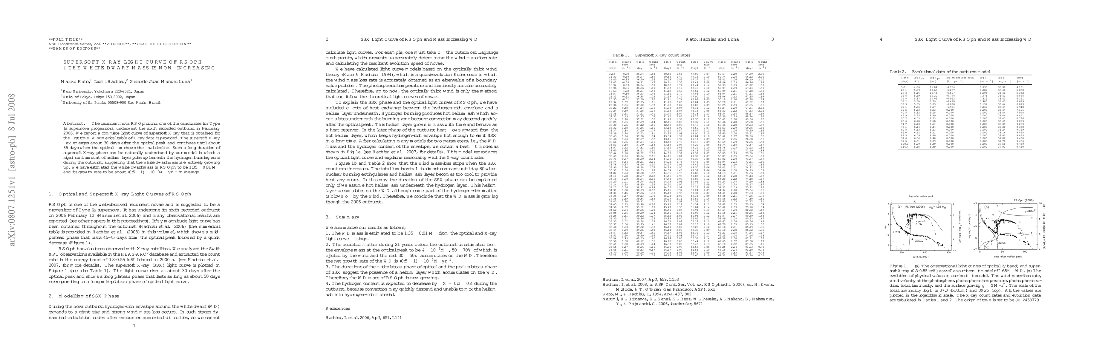 The recurrent nova RS Ophiuchi exhibited a sixth outburst in 2006, with a newly obtained supersoft X-ray light curve revealing a prolonged X-ray emission phase. This suggests a growing white dwarf mass, estimated at 1.35 ± 0.01 M_\sun, with an average growth rate of (0.5-1) × 10^{-7} M_\sun yr^{-1}.