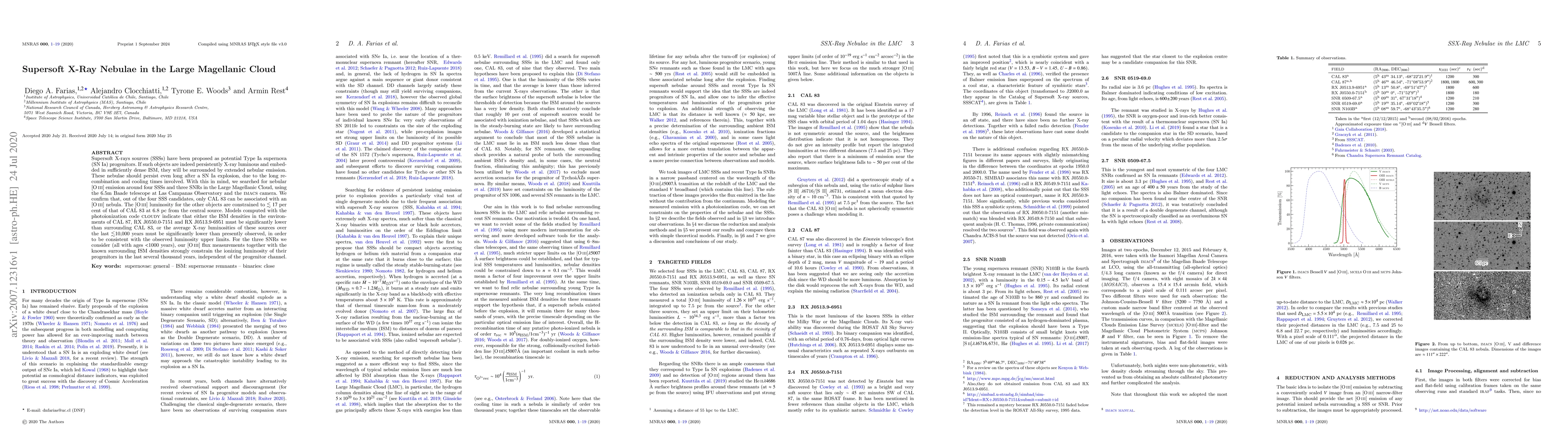 This research identifies extended nebular [O III] emission around supersoft X-ray sources (SSSs) in the Large Magellanic Cloud, confirming only one SSS, CAL 83, has such an emission. The study suggests lower ISM densities or significantly reduced X-ray luminosities for other SSSs, while also constraining the ionizing luminosity of young supernova remnants.