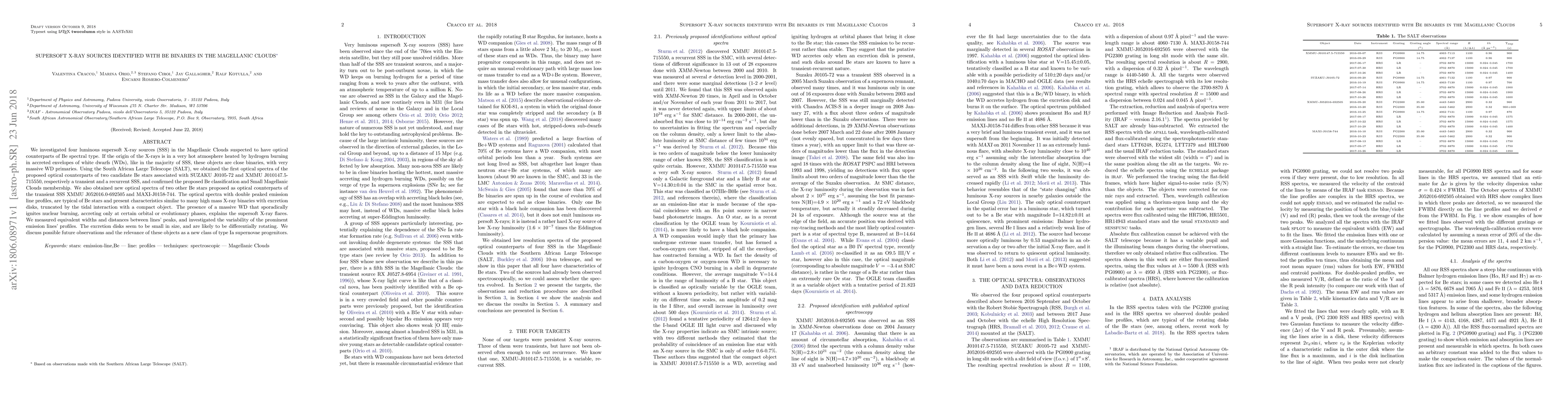 The study used optical spectroscopy with the South African Large Telescope (SALT) to analyze four supersoft X-ray sources (SSS) in the Magellanic Clouds, suspected to have Be binary star counterparts.