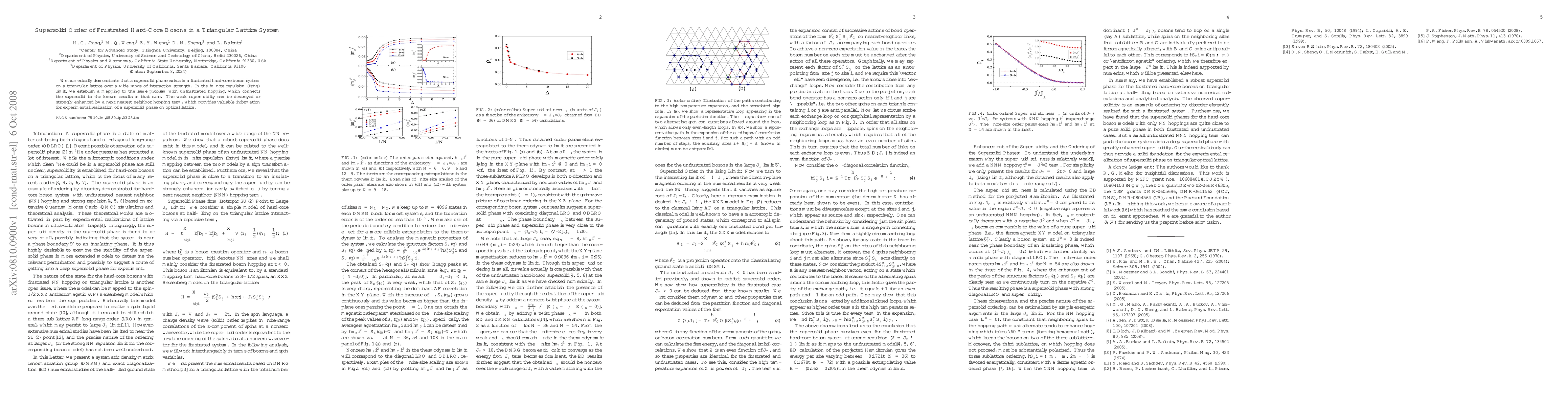 Summary: This study numerically confirms the existence of a supersolid phase in hard-core bosons on a triangular lattice across various interaction strengths. It also establishes a connection to unfrustrated hopping scenarios, and highlights how next nearest neighbor hopping can either destroy or enhance superfluidity, offering insights for supersolid phase experiments in optical lattices.