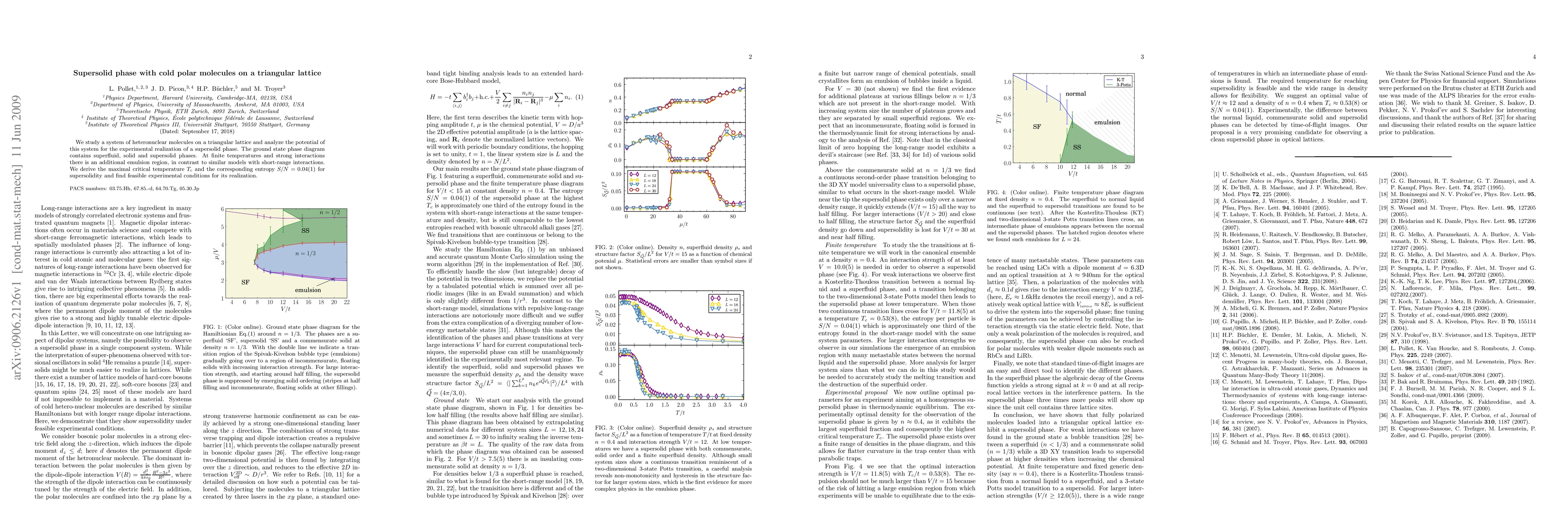 This paper investigates heteronuclear molecules on a triangular lattice, exploring the potential for realizing a supersolid phase. It identifies a ground state phase diagram with superfluid, solid, and supersolid phases, and finds a feasible critical temperature $T_c$ and entropy $S/N = 0.04(1)$ for supersolidity under certain experimental conditions.