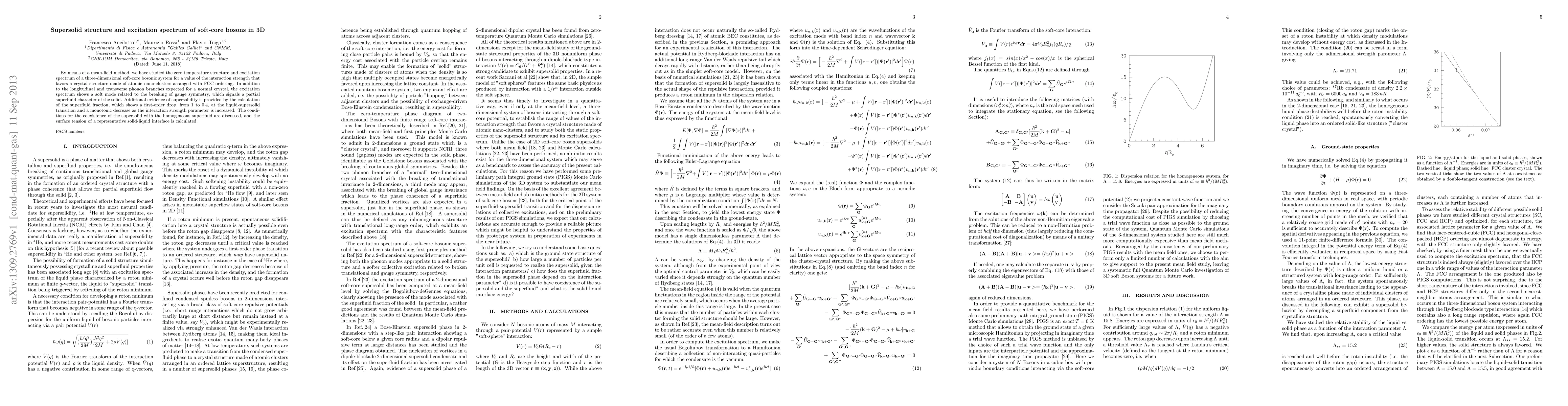 Researchers studied a 3D soft-core bosonic system, finding it exhibits supersolid properties with a soft mode related to gauge symmetry breaking, and a clear transition between liquid and supersolid states.