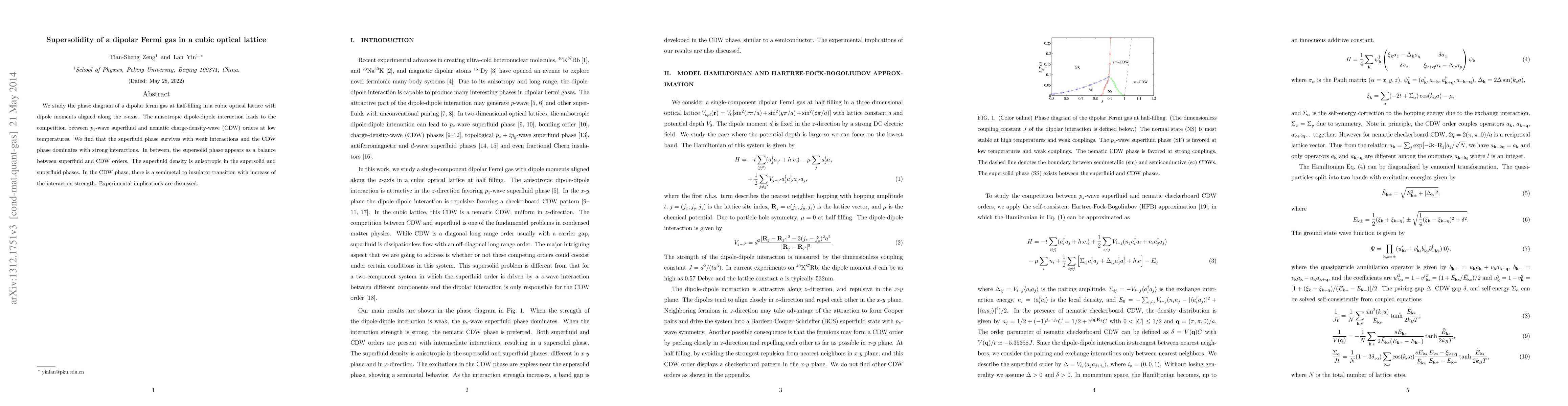 This paper investigates the phase diagram of a dipolar Fermi gas in a cubic optical lattice, revealing the emergence of a supersolid phase that balances superfluid and charge-density-wave orders due to anisotropic dipole-dipole interactions. The study finds that the supersolid phase exists between the superfluid and the CDW phases, with implications for experimental observations.