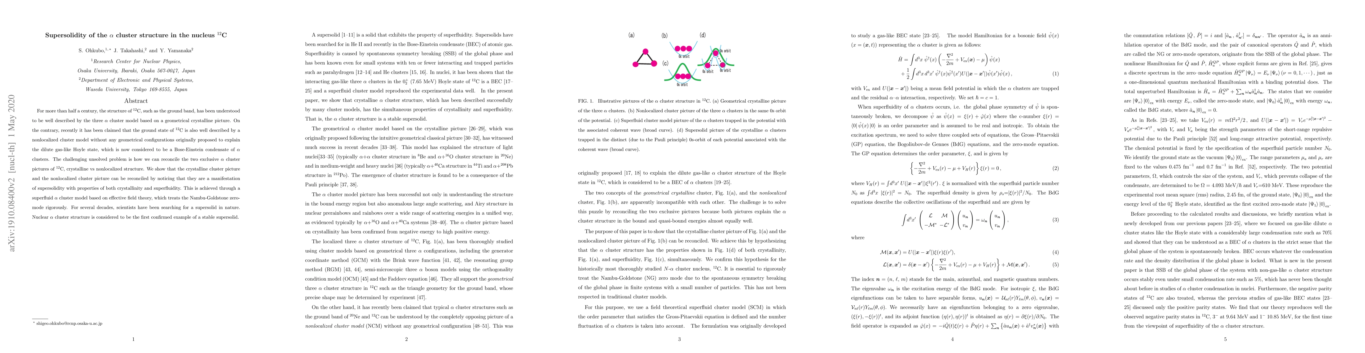 This paper reconciles two conflicting models of the $^{12}$C nucleus, proposing that its structure exhibits supersolidity—a state combining both crystalline and superfluid properties. The authors introduce a superfluid $\alpha$ cluster model to demonstrate this, marking the first confirmed example of a stable supersolid in nuclear physics.
