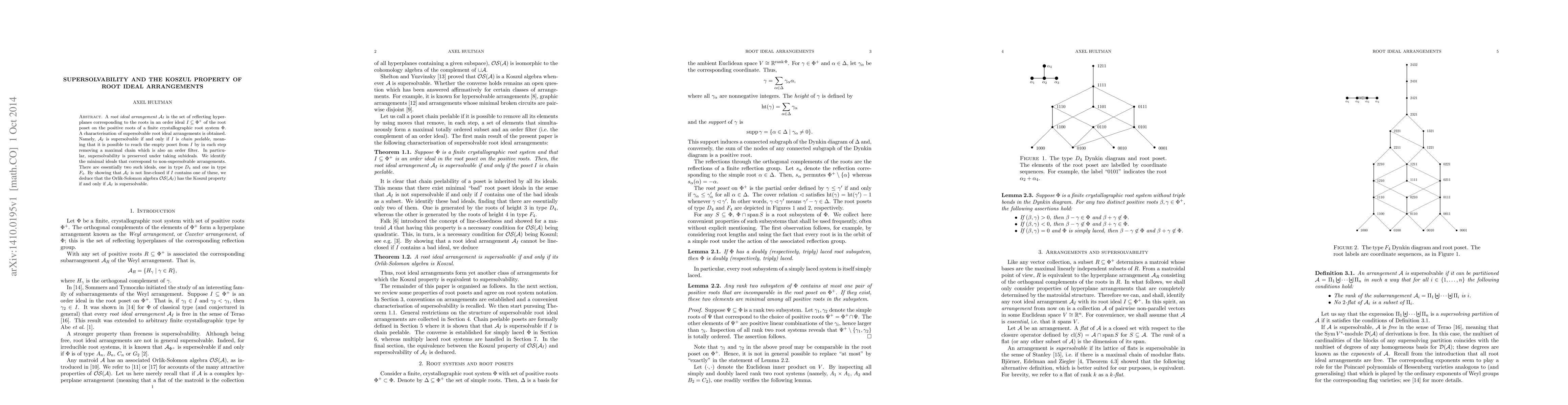 This paper characterizes supersolvable root ideal arrangements, showing they correspond to chain peelable order ideals. It identifies minimal non-supersolvable ideals in types $D_4$ and $F_4$, and concludes that the Orlik-Solomon algebra has the Koszul property if and only if the arrangement is supersolvable.