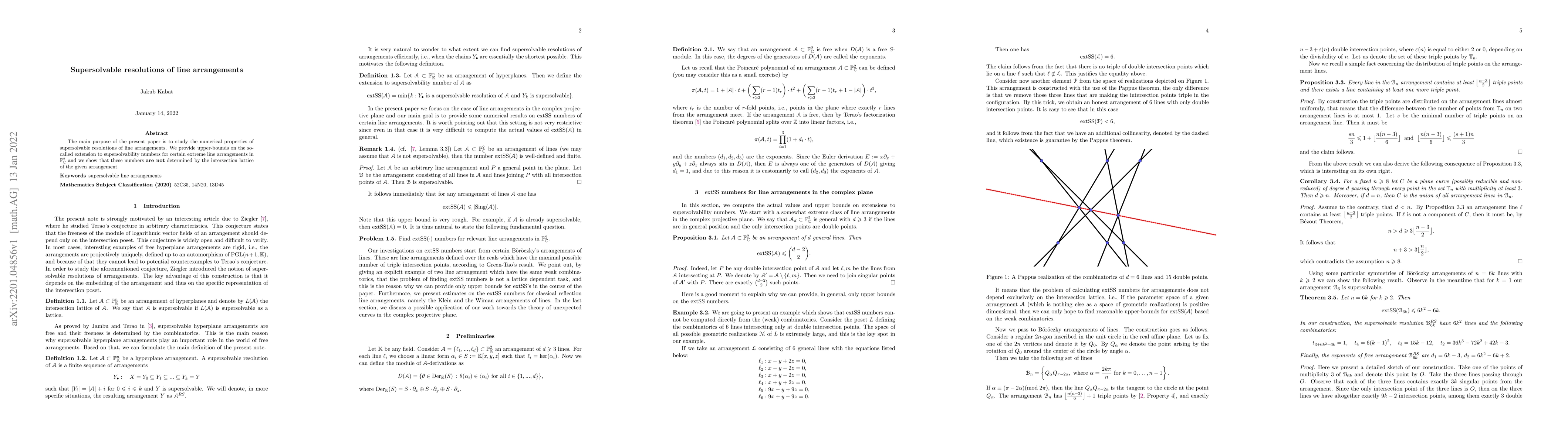 This paper investigates supersolvable resolutions of line arrangements, providing upper bounds on extension to supersolvability numbers for specific extreme arrangements in complex projective plane, and demonstrating that these numbers are not determined by the intersection lattice of the arrangement.