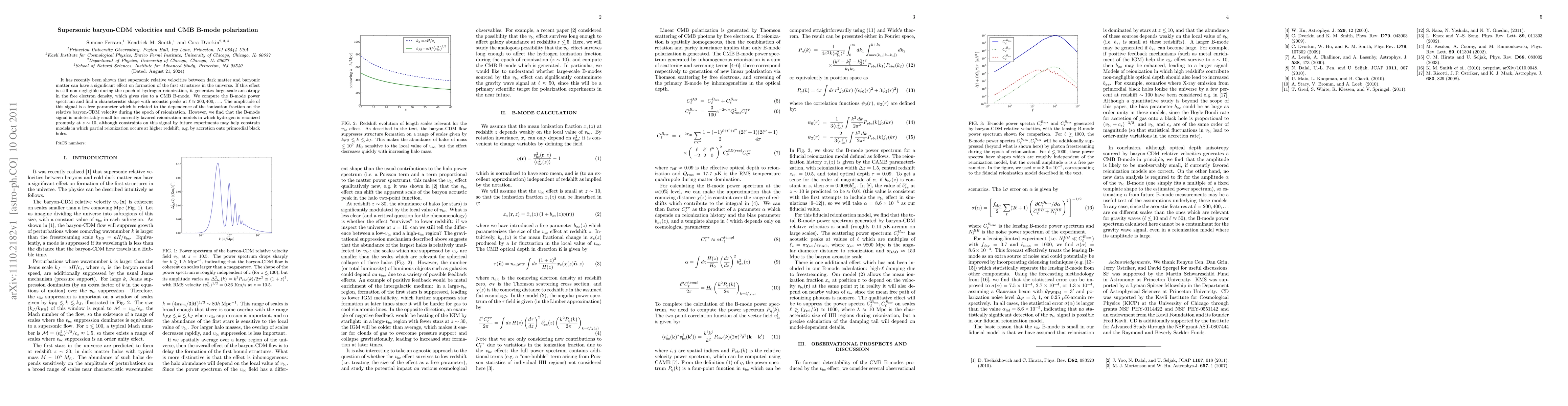 It has recently been shown that supersonic relative velocities between dark matter and baryonic matter can have a significant effect on formation of the first structures in the universe. If this effect is still non-negligible during the epoch of hydrogen reionization, it generates large-scale anisotropy in the free electron density, which gives rise to a CMB B-mode. We compute the B-mode power spectrum and find a characteristic shape with acoustic peaks at l ~ 200, 400, ... The amplitude of this signal is a free parameter which is related to the dependence of the ionization fraction on the relative baryon-CDM velocity during the epoch of reionization. However, we find that the B-mode signal is undetectably small for currently favored reionization models in which hydrogen is reionized promptly at z ~ 10, although constraints on this signal by future experiments may help constrain models in which partial reionization occurs at higher redshift, e.g. by accretion onto primordial black holes.