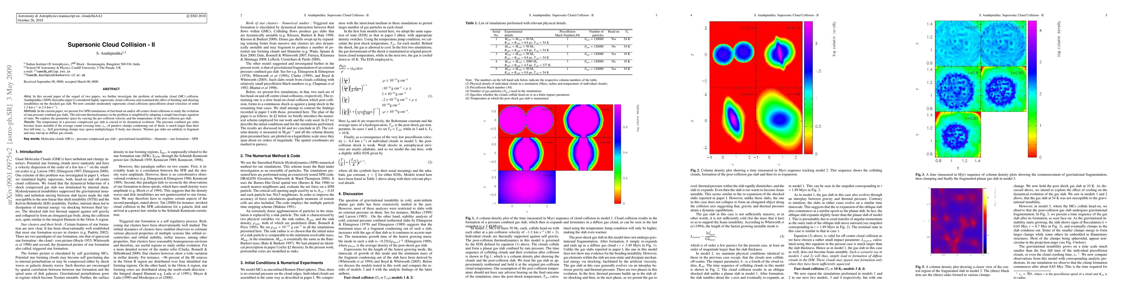 In this second paper of the sequel of two papers, we further investigate the problem of molecular cloud (MC) collision. Anathpindika (2009) (hereafter paper I) considered highly supersonic cloud collisions and examined the effect of bending and shearing instabilities on the shocked gas slab. We now consider moderately supersonic cloud collisions (precollision cloud velocities of order 1.2 km s$^{-1}$ to 2.4 km s$^{-1}$). In the current paper, we present five SPH simulations of fast head-on and/or off-centre cloud collisions to study the evolution of ram pressure confined gas slabs. The relevant thermodynamics in the problem is simplified by adopting a simple barytropic equation of state. We explore the parameter space by varying the pre-collision velocity and the temperature of the post collision gas slab. The temperature in a pressure compressed gas slab is crucial to its dynamical evolution. The pressure confined gas slabs become Jeans unstable if the average sound crossing time, $t_{cr}$, of putative clumps condensing out of them, is much larger than their free fall time, $t_{ff}$. Self gravitating clumps may spawn multiple/larger $N$-body star clusters. Warmer gas slabs are unlikely to fragment and may end up as diffuse gas clouds.