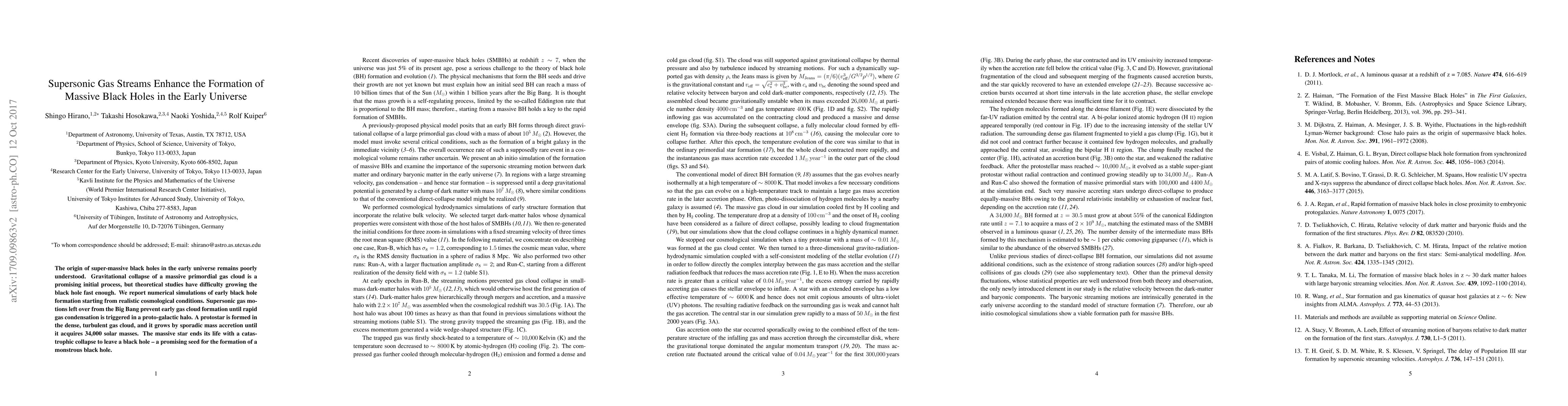 This paper reports that supersonic gas streams in the early universe can accelerate the formation of supermassive black holes by triggering rapid gas condensation in proto-galactic halos, leading to the growth of a massive star that collapses to form a black hole seed.