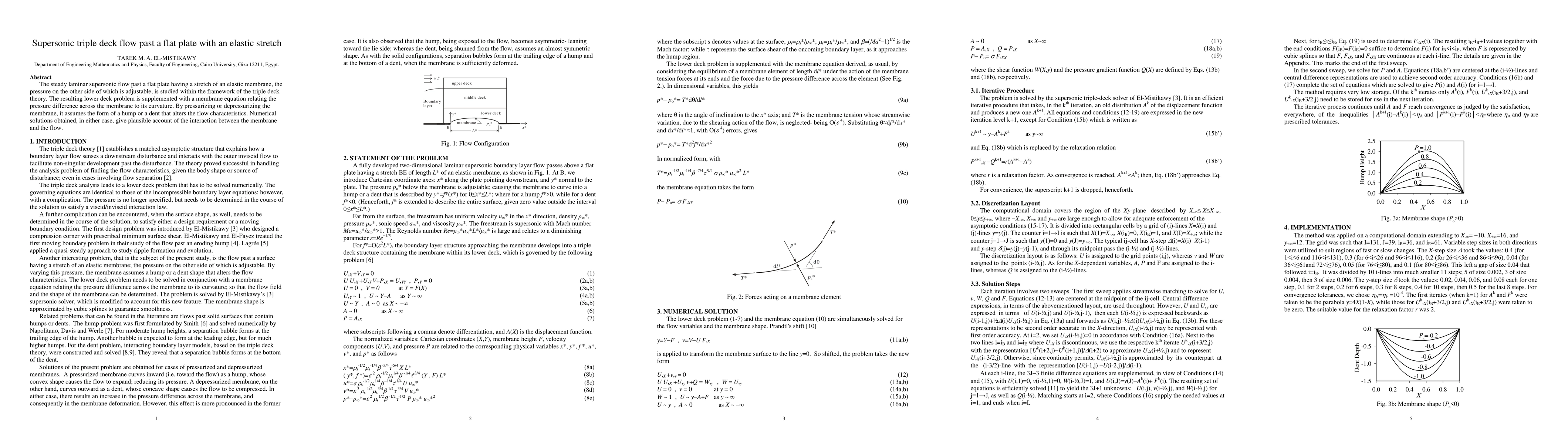 This paper investigates the interaction of supersonic laminar flow past a flat plate with an elastic stretch using triple deck theory, focusing on how adjustable membrane pressure alters flow characteristics and how numerical solutions reflect this dynamic interaction.