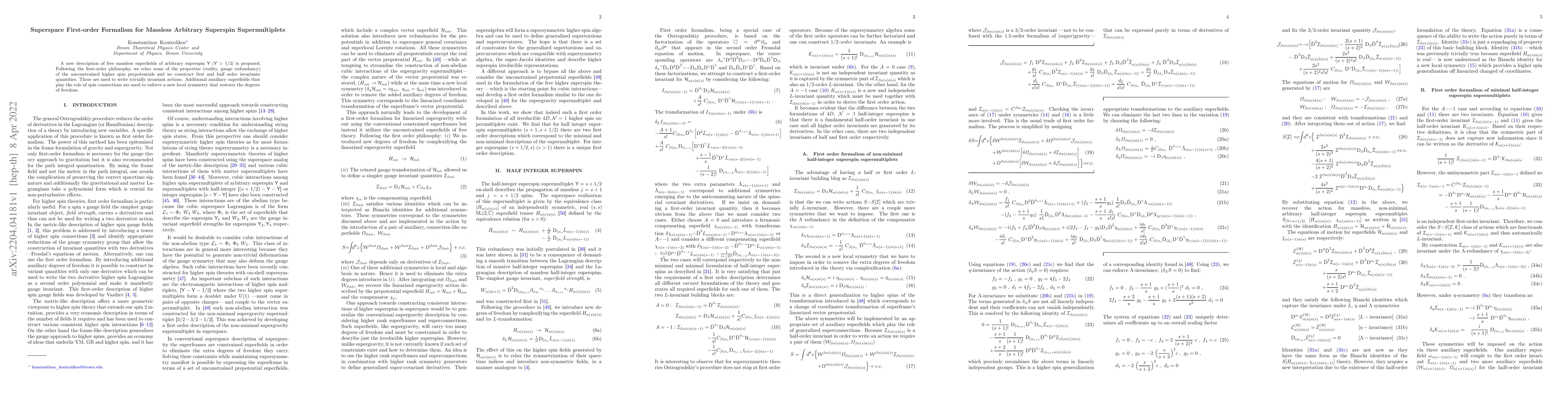 This paper introduces a novel first-order formalism for describing free massless superfields of arbitrary superspin, relaxing certain properties of higher spin prepotentials. It constructs invariant quantities and auxiliary superfields to restore degrees of freedom and establish a new local symmetry.