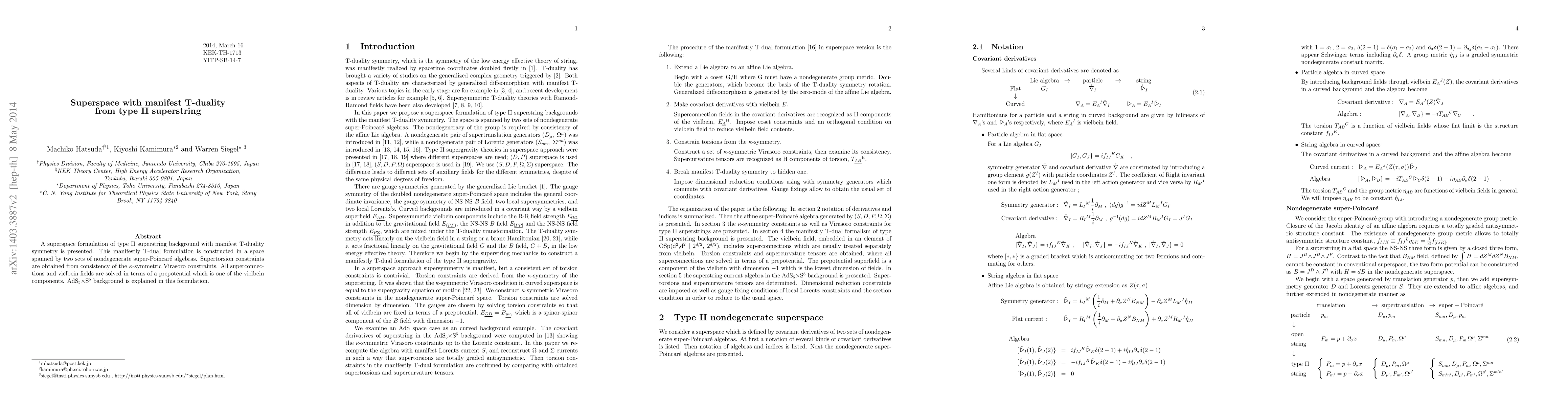 The main technical contribution is the development of a superspace formulation with manifest T-duality for type II superstrings, utilizing nondegenerate super-Poincare algebra and kappa-symmetric Virasoro constraints.