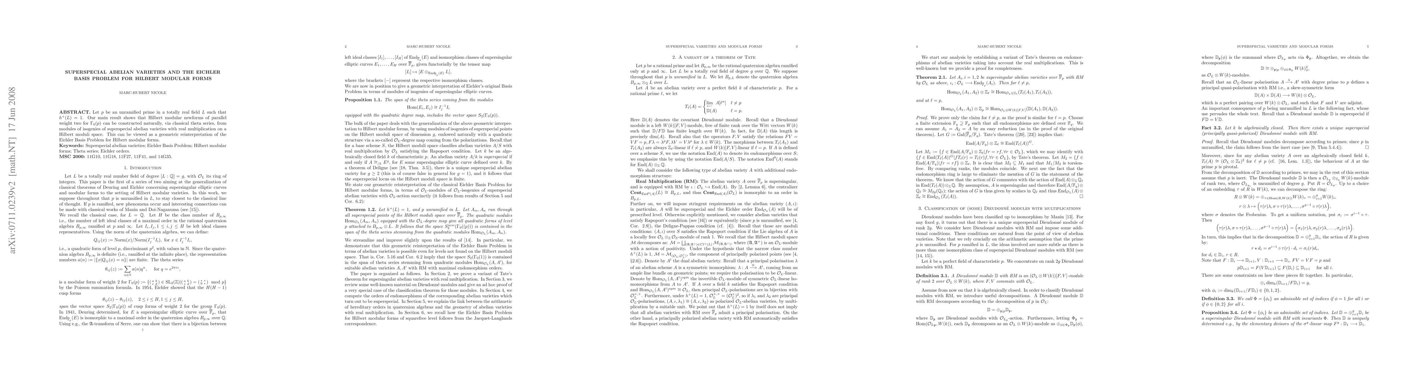 Summary: The paper constructs Hilbert modular newforms of parallel weight two for $\Gamma_0(p)$ using classical theta series from modules of isogenies of superspecial abelian varieties, providing a geometric solution to the Eichler Basis Problem for Hilbert modular forms.