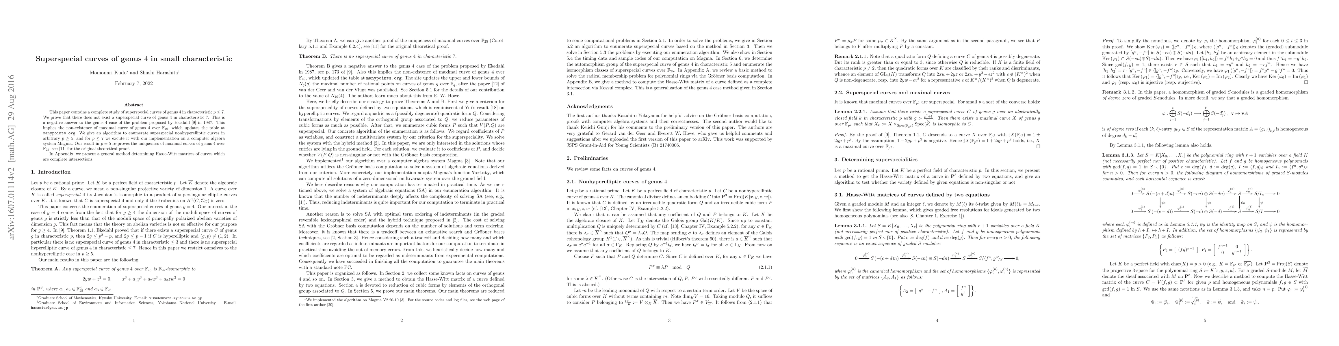 This paper contains a complete study of superspecial curves of genus $4$ in characteristic $p\le 7$. We prove that there does not exist a superspecial curve of genus $4$ in characteristic $7$. This is a negative answer to the genus $4$ case of the problem proposed by Ekedahl [9] in 1987. This implies the non-existence of maximal curve of genus $4$ over $\mathbb{F}_{49}$, which updates the table at {\tt manypoints.org}. We give an algorithm to enumerate superspecial nonhyperelliptic curves in arbitrary $p \ge 5$, and for $p\le 7$ we excute it with our implementation on a computer algebra system Magma. Our result in $p=5$ re-proves the uniqueness of maximal curves of genus $4$ over $\mathbb{F}_{25}$, see [11] for the original theoretical proof. In Appendix, we present a general method determining Hasse-Witt matrices of curves which are complete intersections.