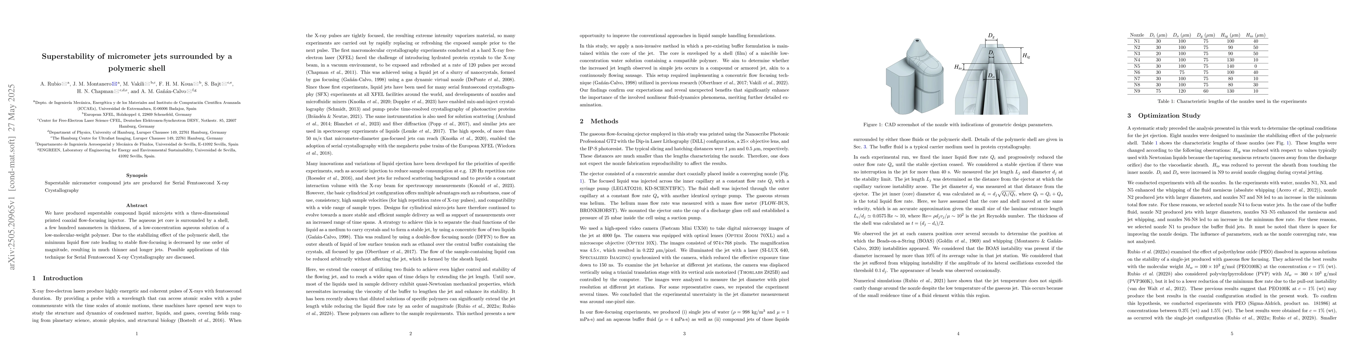 The research utilized a three-dimensional printed coaxial flow-focusing injector to produce compound liquid microjets, with an aqueous jet core surrounded by a thin polymeric shell.