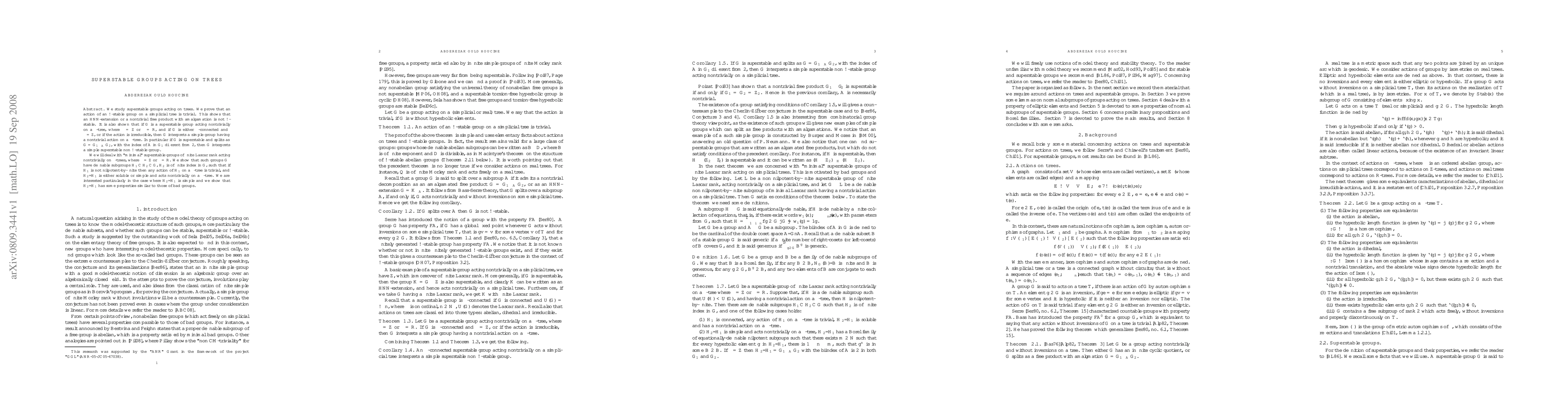 This paper investigates superstable groups acting on trees, proving that an $\omega$-stable group's action on a simplicial tree is trivial, thereby ruling out $\omega$-stability in HNN-extensions or nontrivial free products. It also shows that such groups, when acting nontrivially on $\mathbb{Z}$- or $\mathbb{R}$-trees under certain conditions, interpret simple groups with nontrivial actions, leading to the conclusion that they can interpret simple non-$\omega$-stable groups.