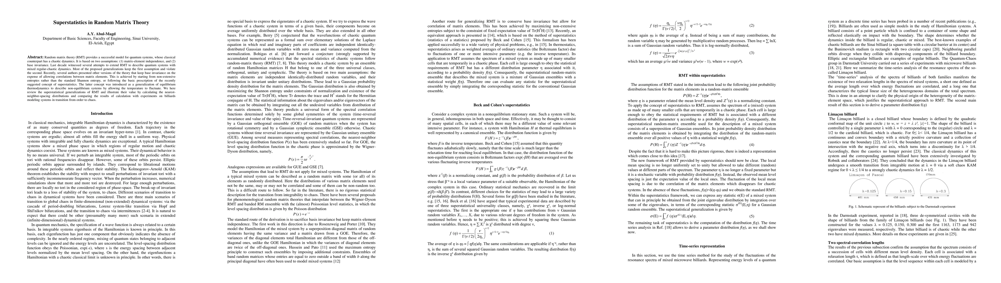 This paper reviews the superstatistical extensions of random matrix theory (RMT), which maintain base invariance while allowing correlations between matrix elements. These extensions are demonstrated by calculating nearest-neighbor-spacing distributions and comparing results with experimental data from billiards modeling systems transitioning from order to chaos.