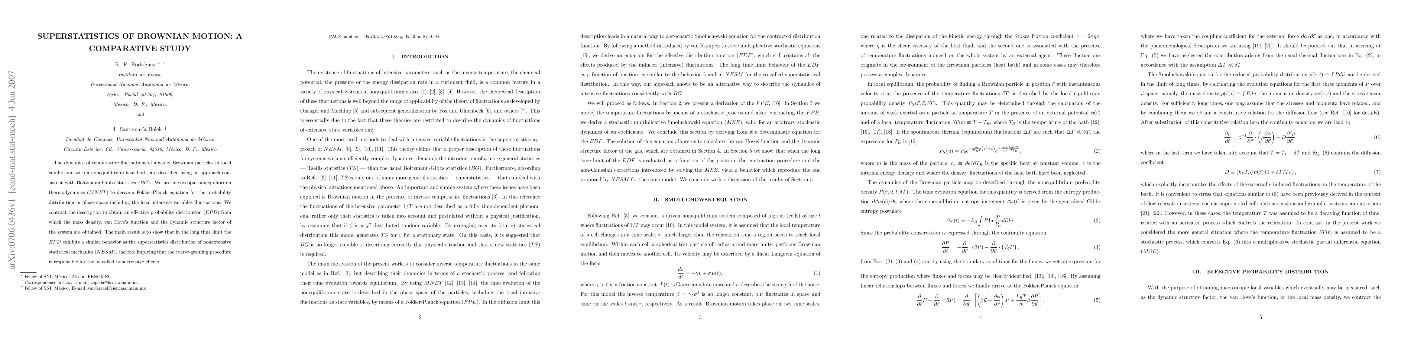 The dynamics of temperature fluctuations of a gas of Brownian particles in local equilibrium with a nonequilibrium heat bath, are described using an approach consistent with Boltzmann-Gibbs statistics (BG). We use mesoscopic nonequilibrium thermodynamics (MNET) to derive a Fokker-Planck equation for the probability distribution in phase space including the local intensive variables fluctuations. We contract the description to obtain an effective probability distribution (EPD) from which the mass density, van Hove's function and the dynamic structure factor of the system are obtained. The main result is to show that in the long time limit the EPD exhibits a similar behavior as the superstatistics distribution of nonextensive statistical mechanics (NESM), therfore implying that the coarse-graining procedure is responsible for the so called nonextensive effects.