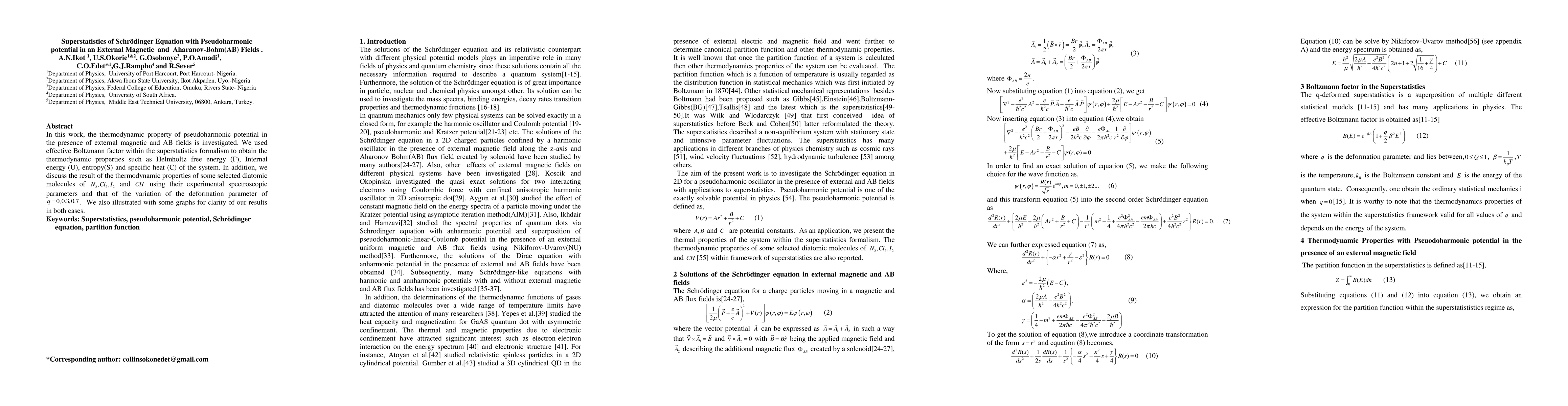This research investigates thermodynamic properties of a pseudoharmonic potential in external magnetic and Aharonov-Bohm fields using superstatistics formalism, revealing key effects on molecules like N2, Cl2, I2, and CH.