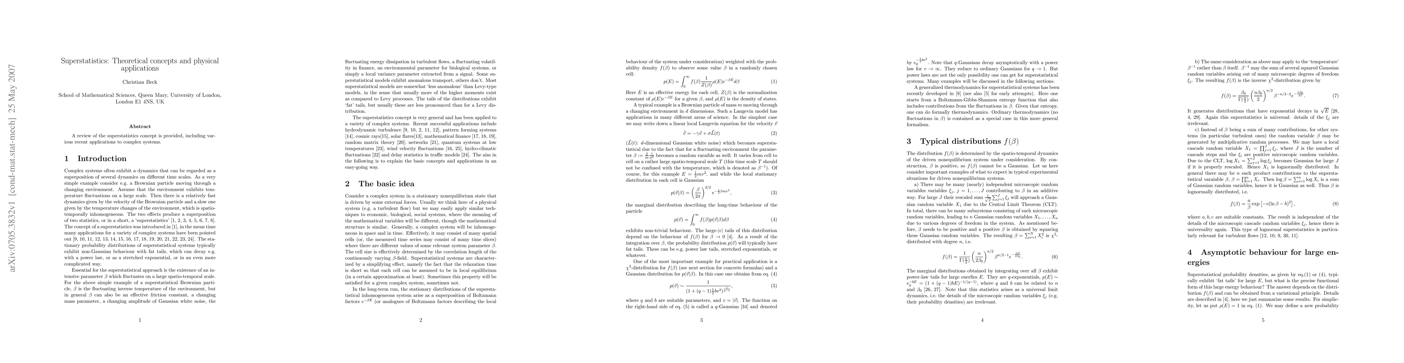 Summary: This paper reviews the concept of superstatistics, explaining its theoretical underpinnings and exploring its recent applications to complex systems, highlighting its potential in understanding diverse physical phenomena.
