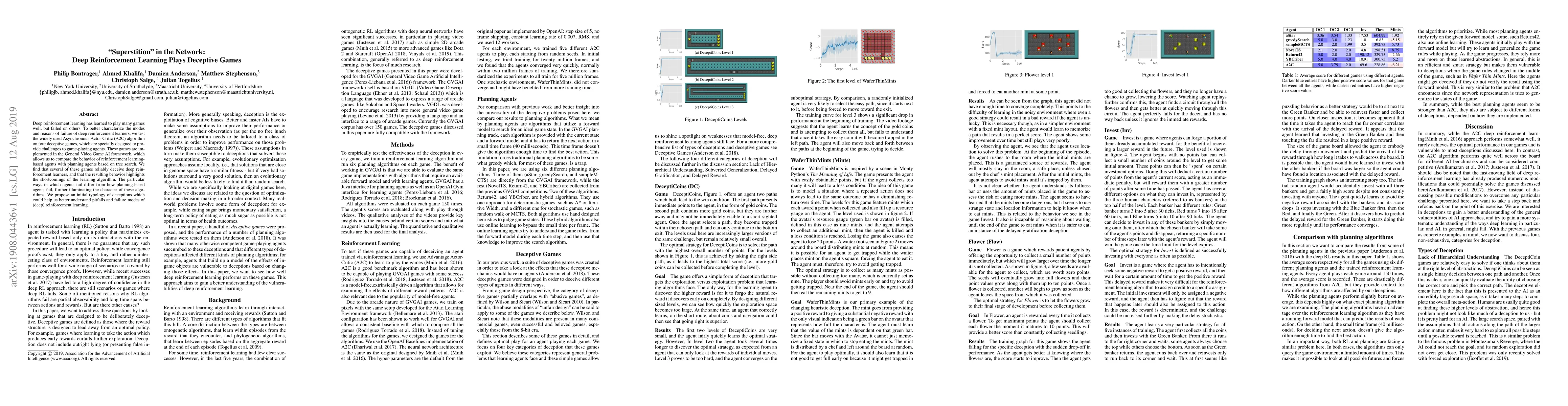 This paper investigates the failure modes of the Asynchronous Actor-Critic (A2C) algorithm in deceptive games designed to challenge deep reinforcement learners. It finds that these games reveal significant shortcomings in the algorithm, highlighting differences in failure compared to planning-based agents and proposing a typology of deceptions to better understand reinforcement learning pitfalls.