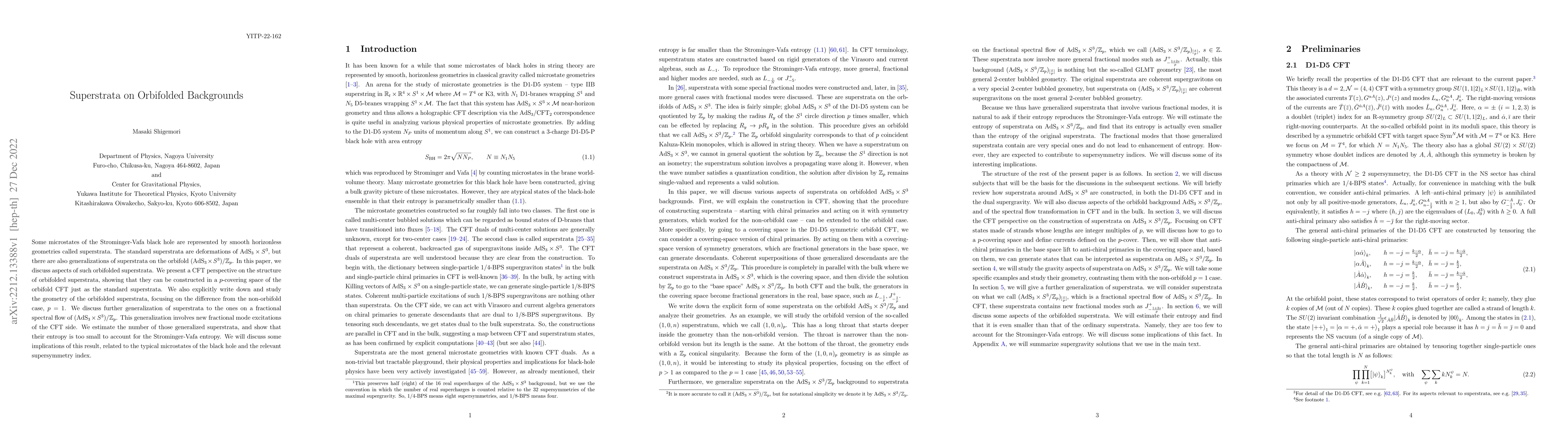 This paper explores microstates of the Strominger-Vafa black hole known as superstrata, particularly focusing on their generalizations on orbifolded backgrounds. It presents a CFT perspective on orbifolded superstrata and discusses their geometry, fractional spectral flow, and entropy, concluding that they cannot account for the Strominger-Vafa entropy.