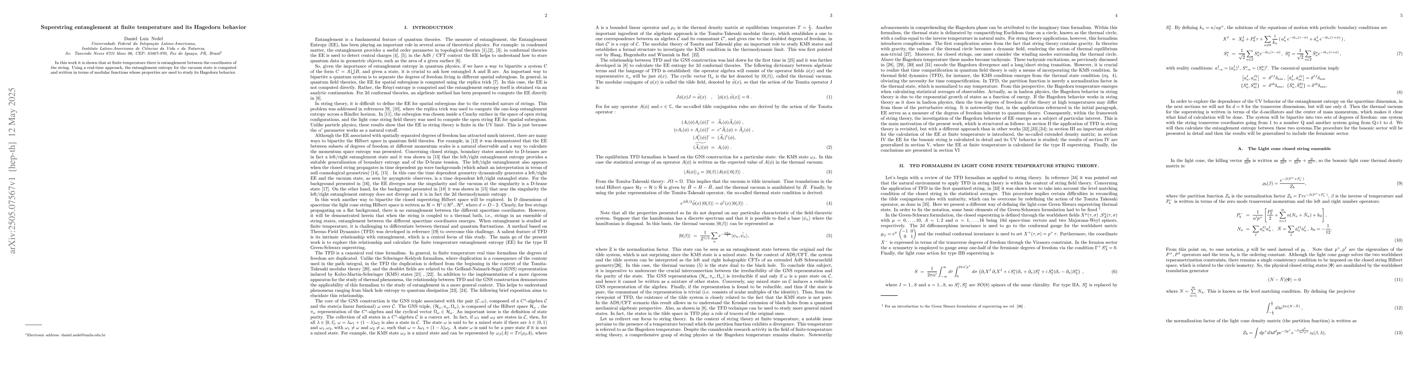 The paper presents a method to compute and analyze entanglement entropy using modular functions at finite temperature in string theory.