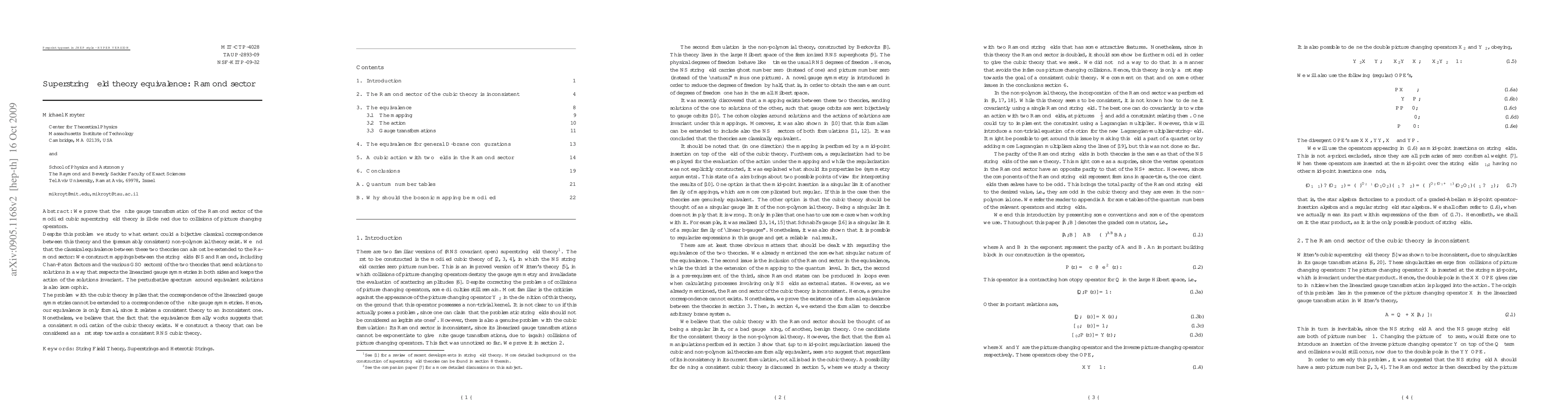 This paper demonstrates that the Ramond sector of modified cubic superstring field theory is ill-defined due to collisions of picture changing operators, but it shows that a bijective classical correspondence exists between this theory and a presumably consistent non-polynomial theory, maintaining linearized gauge symmetries and preserving the action and perturbative spectrum. The equivalence is formal as it relates a consistent theory to an inconsistent one, hinting at a potential consistent modification of the cubic theory.