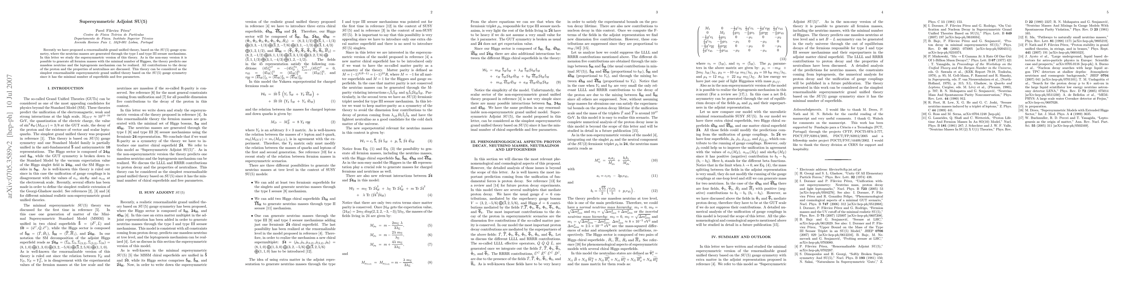 This paper proposes a supersymmetric version of a grand unified theory based on SU(5) gauge symmetry, incorporating both type I and type III seesaw mechanisms for neutrino mass generation. The theory maintains minimal Higgses, predicts one massless neutrino, and allows for leptogenesis, while also discussing proton decay and neutralino properties.