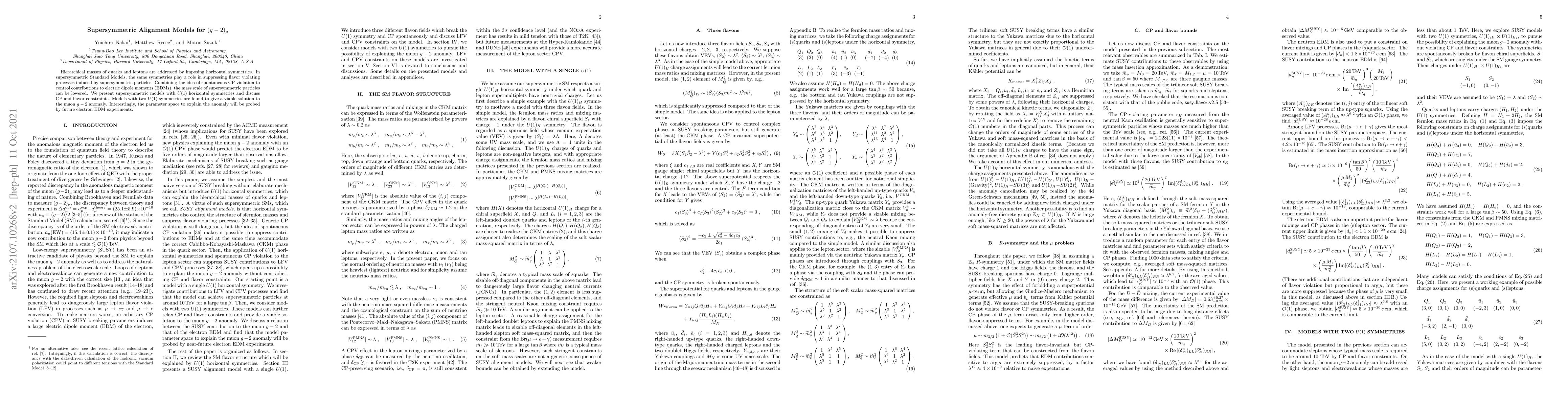This paper explores supersymmetric alignment models with $U(1)$ horizontal symmetries to address quark and lepton mass hierarchies and suppress flavor-violating processes. It finds that models with two $U(1)$ symmetries can resolve the muon $g-2$ anomaly and predicts that future electron EDM experiments will probe the relevant parameter space.