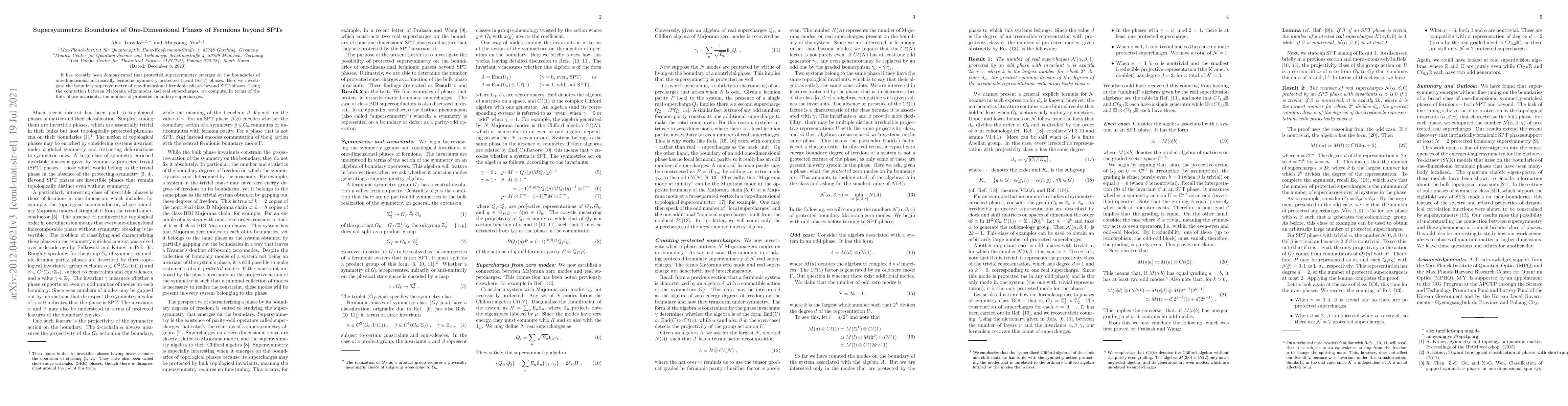 This paper explores the boundary supersymmetry in one-dimensional fermionic phases that extend beyond symmetry-protected topological (SPT) states. It establishes a link between Majorana edge modes and real supercharges to determine the number of protected boundary supercharges based on bulk phase invariants.