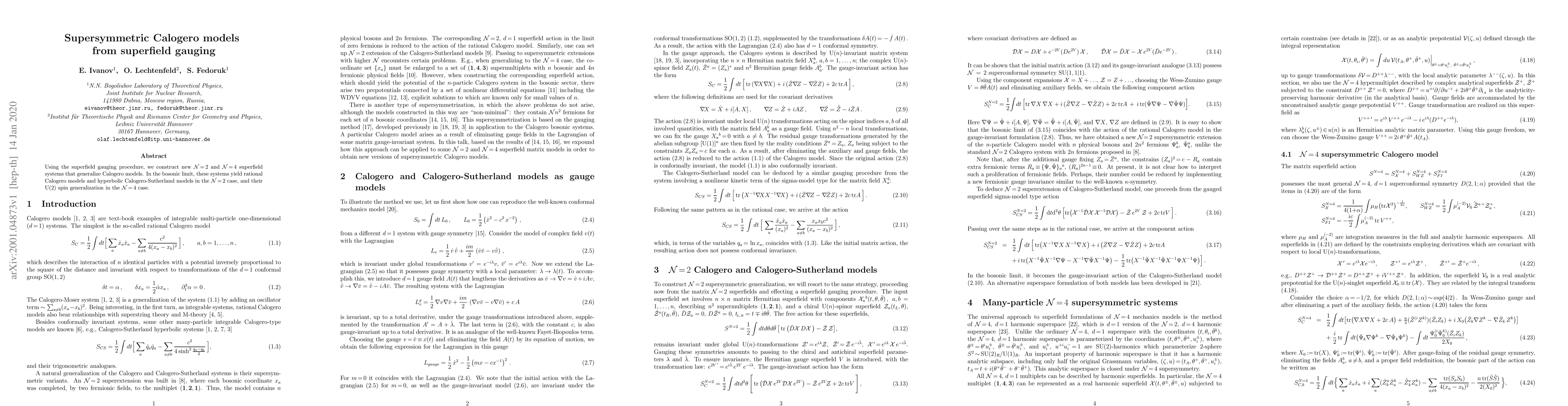 This paper constructs new ${\cal N}\,{=}\,2$ and ${\cal N}\,{=}\,4$ supersymmetric systems via superfield gauging, generalizing Calogero models, and yields rational and hyperbolic Calogero-Sutherland models in the bosonic limit.