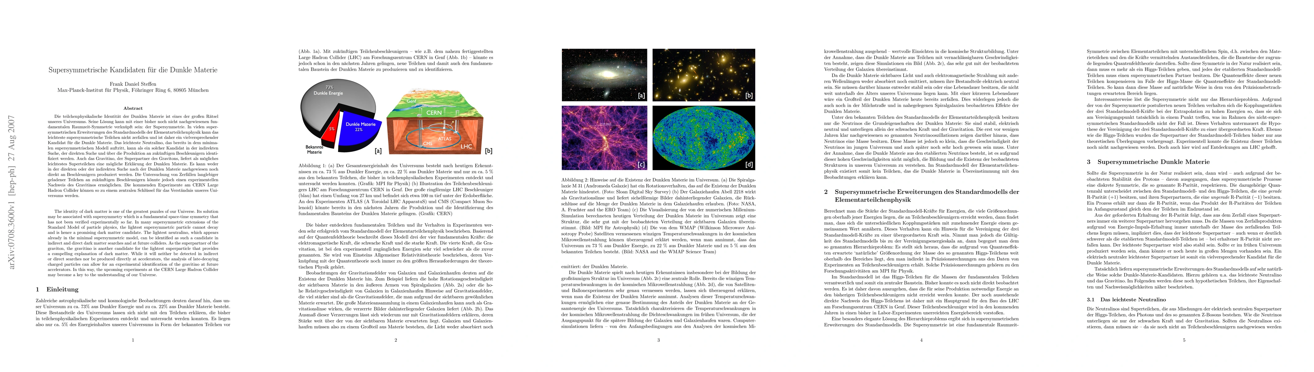 The identity of dark matter is one of the greatest puzzles of our Universe. Its solution may be associated with supersymmetry which is a fundamental space-time symmetry that has not been verified experimentally so far. In many supersymmetric extensions of the Standard Model of particle physics, the lightest supersymmetric particle cannot decay and is hence a promising dark matter candidate. The lightest neutralino, which appears already in the minimal supersymmetric model, can be identified as such a candidate in indirect and direct dark matter searches and at future colliders. As the superpartner of the graviton, the gravitino is another candidate for the lightest superparticle that provides a compelling explanation of dark matter. While it will neither be detected in indirect or direct searches nor be produced directly at accelerators, the analysis of late-decaying charged particles can allow for an experimental identification of the gravitino at future accelerators. In this way, the upcoming experiments at the CERN Large Hadron Collider may become a key to the understanding of our Universe.